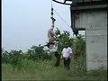 奴隶和服妻,被荒绳紧紧束缚,在天井里倒吊着。