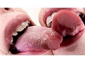 色情话痴女和虚拟唾液之间的女同性恋接吻