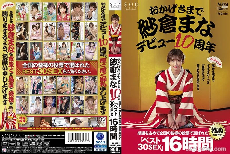 多亏了大家的支持,纱仓真奈成功迎来了出道10周年的纪念。为了表达我们的感激之情,我们特别邀请了全国观众通过投票选出了最受欢迎的30部作品中的16部,希望大家能仔细地欣赏每一部作品,从头到尾看完哦。【附带特别花絮视频】