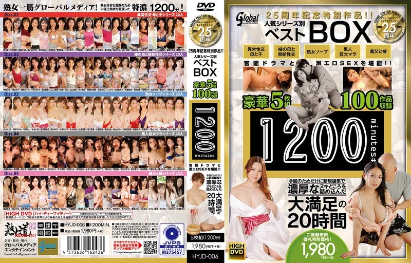 全球媒体25周年纪念特别作品!!根据热门系列精选的最佳剧集,豪华5碟装,收录100集内容,总时长达1200分钟,让您尽情享受刺激的性爱剧情与火爆的性爱场景!!专门为这次纪念活动全新编辑制作,精心挑选了最精彩的片段,总共20个小时的精彩内容,绝对会让您大饱眼福、满意而归!